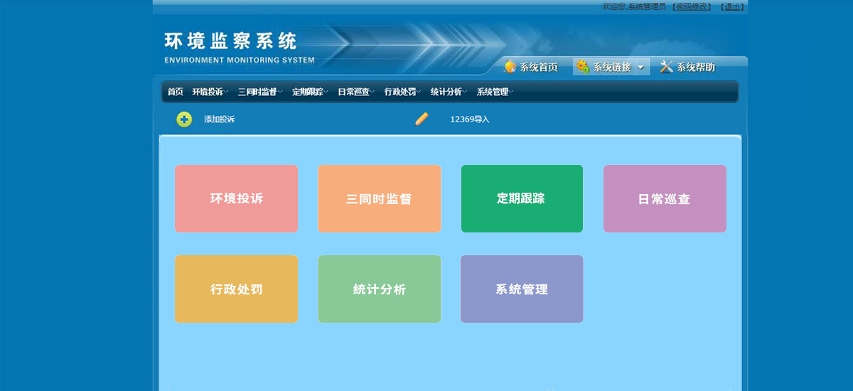 环境监察执法一体化平台包括现场监察,,,环境信访,,,三同时监督,,,,行政处罚等针对污染源监察管理的业务。。。。本系统针对监察执法中投诉来源多、、、信息资料缺乏、、、监管不及时,,,,执法不到位,,尺度不一致等问题,,,,提供了全面、、实在的解决方案。。。同时以污染源生命周期为主线,,,实现对污染源全生命周期的跟踪,,,,监督和管理。。